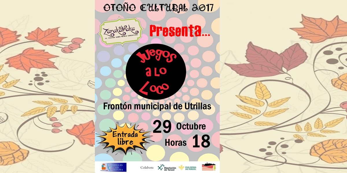 Disfruta con el Otoño Cultural de Utrillas y estos «Juegos a lo loco» el domingo 29 de Octubre a las 18 horas en el frontón municipal de Utrillas, un espectáculo interactivo con entrada libre en el que todo el que quiera asistir es bienvenido.