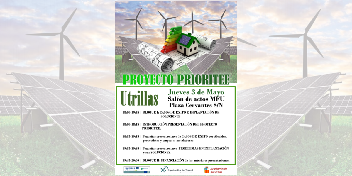 El jueves 3 de Mayo la localidad minera de Utrillas acoge en el salón de actos de las antiguas escuelas de MFU la Presentación PRIORITEE ejemplos de lo que se puede conseguir con UN BUEN ASESORAMIENTO ENERGÉTICO.