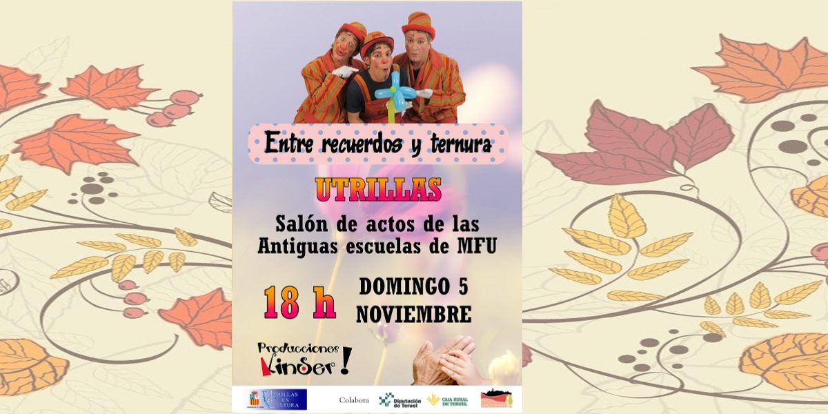 Recuerdos y ternura, abuelos y nietos, el Otoño Cultural de Utrillas recibe a Kiny, Serrucho y Jano en un entrañable espectáculo donde descubrimos que nuestros mayores tienen en sus recuerdos los payasos y la ternura de la niñez.