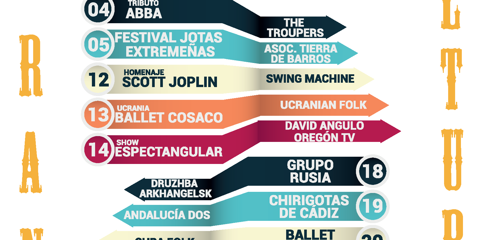 Para finalizar el mes de agosto 4 espectáculos: El grupo Ruso Druzhba Arkangelsk el día 18, desde Cádiz la asociación Andalucía Dos nos trae su arte en estado puro, chirigotas y bailes populares andaluces. El ballet folklórico de Cuba el día 20 de agosto. Y la comedia musical “Una rubia muy legal” el día 26 que pondrá la nota de humor dentro de esta programación.