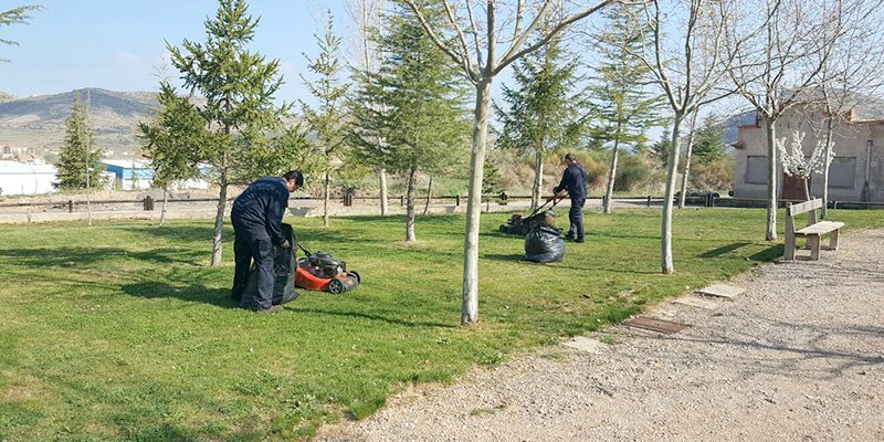 Los trabajos consistirán en el corte del césped, desbrozar hierba y limpiar los restos que puedan existir, así como supervisar el sistema de riego con una periodicidad quincenal con una duración de seis meses, de Abril a Septiembre.